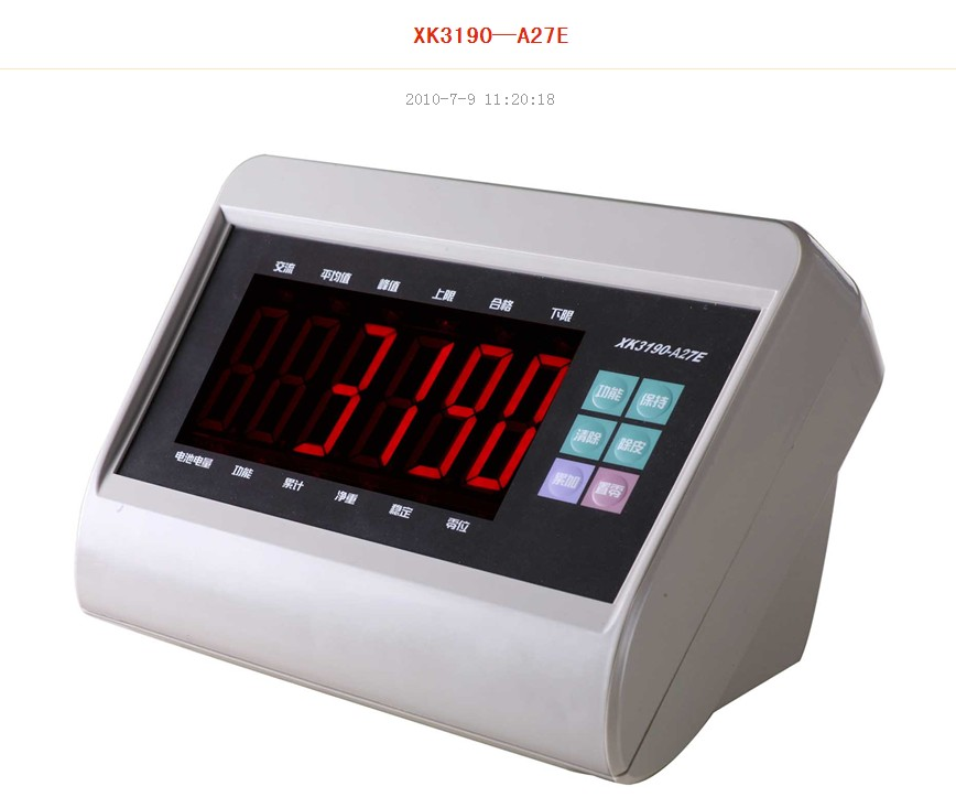 XK3190-A27E仪表适用于电子台秤、电子平台秤、电子地上衡等使用1~4个350Ω传感器的静态称重系统。